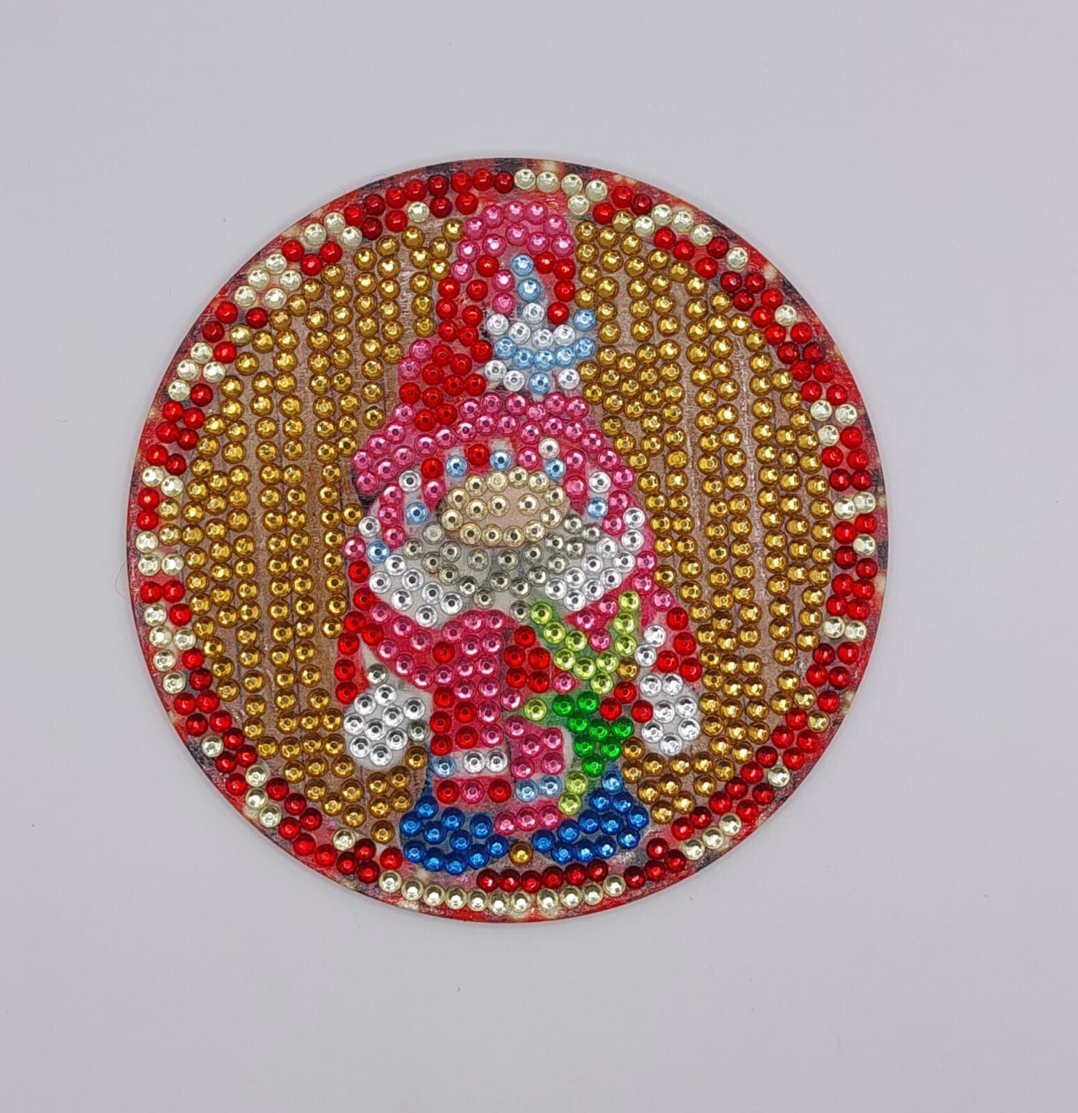 Voeg een vleugje kerstmagie toe aan je tafel met deze schitterende kabouter onderzetter! De ronde onderzetter is versierd met fonkelende steentjes in levendige kerstkleuren zoals rood, goud, blauw en groen. Het vrolijke kabouterdesign maakt het een perfecte aanvulling op je feesttafel, terwijl het oppervlak van je meubels beschermd blijft. Een praktische en decoratieve keuze voor de feestdagen!