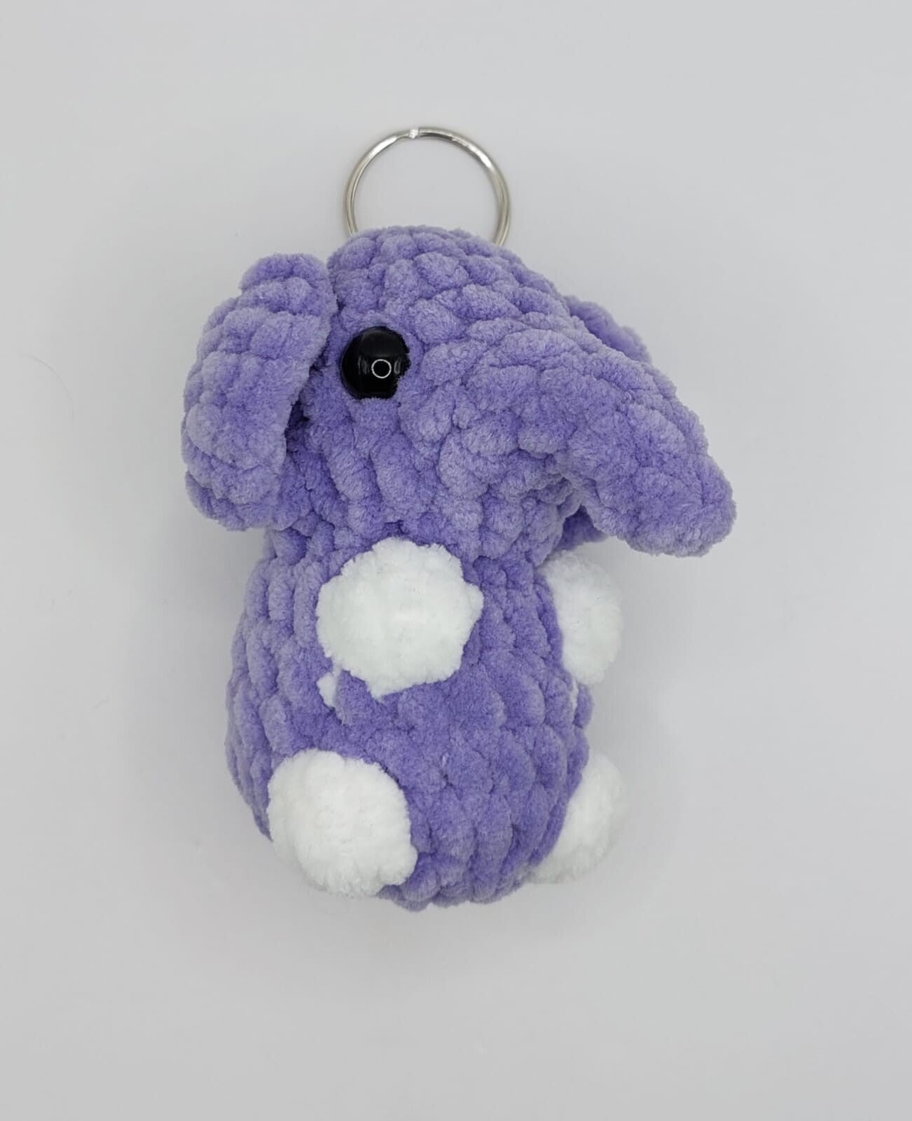 Deze handgemaakte olifant sleutelhanger is een schattige amigurumi creatie, gehaakt van superzacht pluche garen in een vrolijke paarse kleur met witte stippen. Het olifantje heeft lieve zwarte ogen, grote oren en een kenmerkende slurf, waardoor het een uniek accessoire is voor aan je sleutelbos, tas of rugzak. Dankzij het stevige metalen ringetje is de sleutelhanger gemakkelijk te bevestigen en bijzonder geschikt als cadeau voor jong en oud.